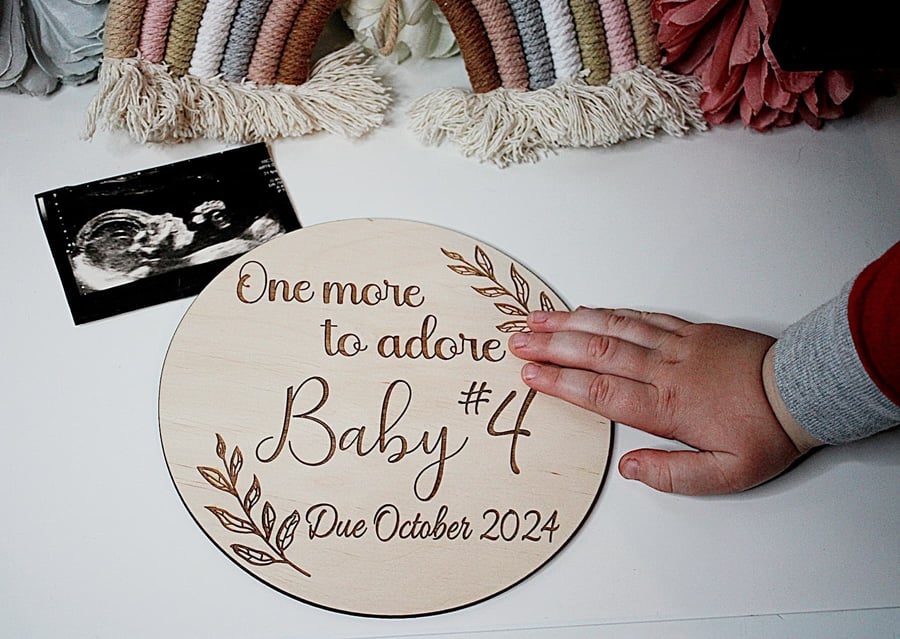 Custom Pregnancy Announcement Plaque, One More Folksy
